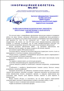 - Кравчина, О.Є. (2012) Бюлетень"Найбільш розповсюджені вільні ліцензії на програмне забезпечення та варіанти їх використання" ІІТЗН НАПН України, м. Київ, Україна.