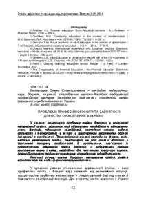 - Волярська, Олена Станіславівна (orcid.org/0000-0002-6812-1154) (2014) Problems of professional education and employment of the adult population Ukraine Освіта дорослих:теорія, довід, перспективи, 2 (9). pp. 42-49. ISSN 2308-6386