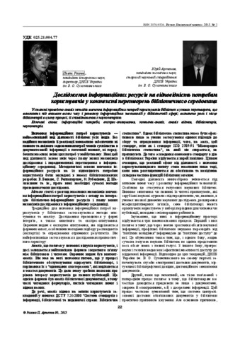 Аnalysis of information needs of library users information methods studying of the transformations that occur under the influence of time requirements and success in the information technology, the role and place of bibliometry this process behold, its correlation with scientometrics.