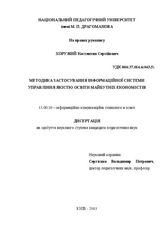 - Хоружий, К.С. (2015) Methodology of using education quality management information system for future economist Dissertation candidate thesis, Національний педагогічний університет ім. М. П. Драгоманова.