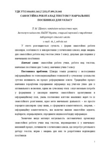 The actuality of using independent work on a text by junior schoolchildren on the principles of competence-based approach is substantiated in the article. The essence of pupils’ independent work is considered, its types and forms, most expedient for implementation in educational process of primary school for working on a text, are distinguished. The State standard of primary general education and the curriculum “Literary Reading” are analysed with a purpose of tasks selection for independent work on a text by pupils of 3rd form. The main trends of independent work on a text by 3rd form pupils are identified, the relevant tasks for manuals on elective course are selected and organized. In particular, it is a few number of tasks on developing technology of reading; tasks on recognition of words, sentences, indentions, texts, editing, construction of words, sentences, texts; fulfilling tasks on semantic and structural analysis of composition, developing pupils’ creative activity on the basis of reading etc. In manuals it is expedient to combine texts and selected the above tasks in small blocks according to thematic principle.