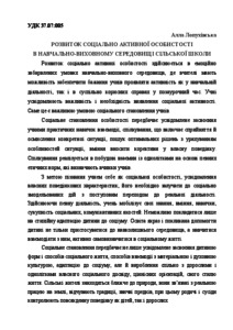 The development of social active personality in the training-educational environment of rural school is lighted up in the article. Taking into consideration that the development of social active personality is one of the important requirements and interest of modern teachers direct children’s natural activity on participation in social life and draw them into social useful activity, promote successful relations with anther people.