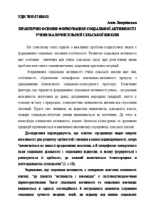 The article deals with the problem of the development of social activity of the rural school. The author looked out the pupil’s socialization as the process of their united to the cultural values. The teacher’s tasks in the educational process, which assist the person’s realization and determination, are lighted out.