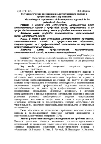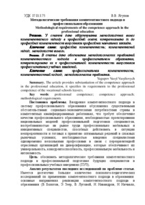 | Keywords: | professional competence; competence approach; methodological requirements |
