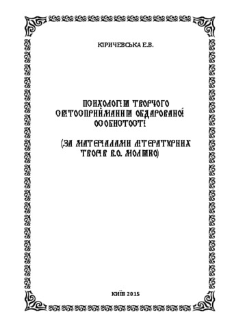- Кіричевська, Е.В. (2015) Psychology of creative attitude of a gifted personality (on materials of literary works V.O. Moliako) Project Report. ПП Фірма "Друк", м.Коростень, Україна.