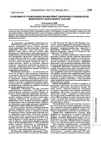 - Хомутиннікова, Н.Н. (2015) Features of formation of professional identity of the tutor of preschool educational institution Молодий вчений, 2 (17). pp. 439-443. ISSN 2304-5809