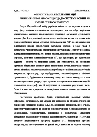 - Кулалаєва, Наталя Валеріївна (2015) Substantiation of the implementation of risk-based approach to the system of education as a condition of sustainable development Професійна освіта: проблеми і перспективи, 1 (8). pp. 30-34.