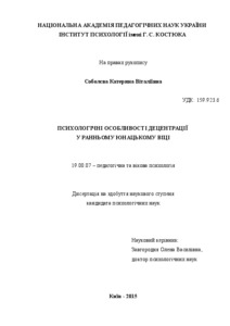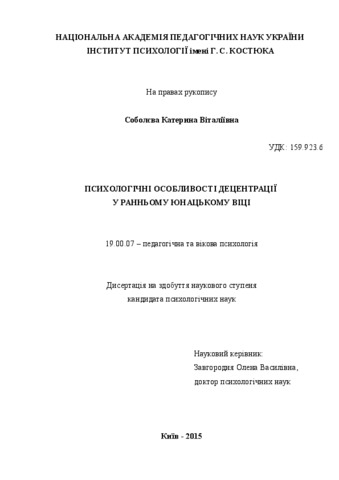 - Соболєва, К.В. (2015) Psychological characteristics decentration in early adolescence Dissertation candidate thesis, Інститут психології імені Г.С. Костюка.