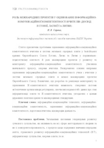 - Сороко, Н.В. (2015) The Role of International Projects in the Evaluation of Teachers Information аnd Communication Competence (experience оf Estonia, Latvia аnd Lithuania) Український педагогічний журнал, 3. pp. 22-35. ISSN 2411-1317
