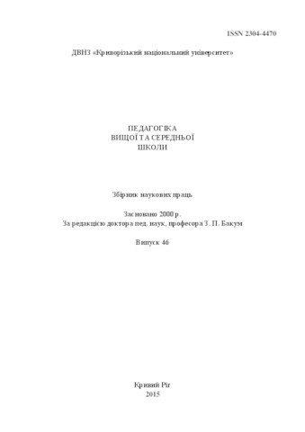 - Калачова, Л.В. (2015) Technology of postgraduate education teachers’ training to the use of audio-visual teaching aids. Педагогіка вищої та середньої школи (46). pp. 157-163. ISSN 2304-4470