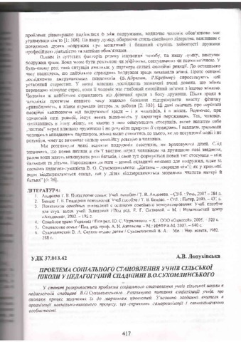 - Лопухівська, Алла Василівна (2009) The problem of social development of the rural school pupils in Suhomlynsky’s pedagogical heritage Збірник наукових праць Херсонського державного університету. Серія "Педагогічні науки" (53). pp. 417-421.