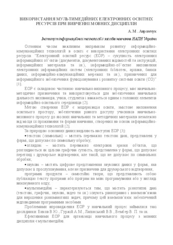 This article presents the use of multimedia electronic educational resources in studying of language disciplines.