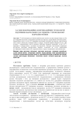 - Мерзликін, О. В. and Мерзликін, П. В. (2015) The Tools of Information AND Communication Technologies for Learning Researches Support In Profile Physics Learning Інформаційні технології і засоби навчанн, 4 (48). pp. 58-87. ISSN 2076-8184