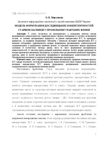 - Мерзликін, О. В. (2015) The Model of Forming the Senior Pupils’ Research Competencies in Profile Physics Learning Збірник наукових праць Кам’янець-Подільського національного університету, 1 (21).
