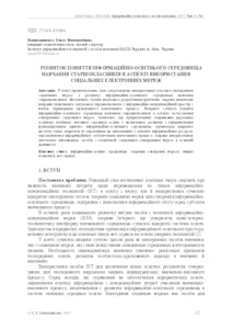 - Коневщинська, О.Е. (2015) Development of the concept of information and educational environment of upper-form pupils in aspects of electronic social networks use Інформаційні технології і засоби навчання Інститут інформаційних технологій і засобів навчання НАПН України, 1 (45). pp. 12-20. ISSN 2076-8184