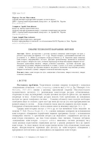 - Маркова, О. М., Семеріков, С.О. and Стрюк, А.М. (2015) The cloud technologies of learning: origin Інформаційні технології і засоби навчання, 2 (46). pp. 29-44. ISSN 2076-8184