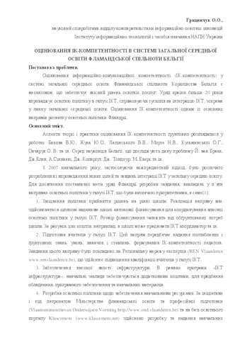 - Гриценчук, О.О. (2015) Evaluation IC-competence in general secondary education of Flemish community of Belgium In: Звітна наукова конференція Інституту інформаційних технологій і засобів навчання НАПН України . ІІТЗН НАПН України, м.Київ, Україна.