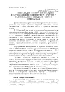 Тhesis highlights the general approaches of information and communication teacher competence of general secondary education in the Netherlands. There is analysis of the experience of national institutions such as the Advisory Board heads of educational departments ADEF (Algemeen Directeurenoverleg Educatieve Faculteiten), foundation Kennisnet. There are determined problematic aspects, features, general trends and the development of infrared competence teacher of general secondary education in the Netherlands.