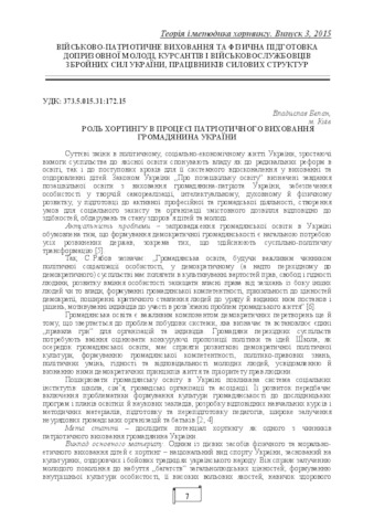 - Белан, Владислав Юрійович (2015) Role of Horting in patriotic education of a Ukrainian citizen Теорія і методика хортингу (3). pp. 7-13. ISSN 978-966-437-403-1