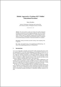 The article intends to explore and estimate the possible pedagogical advantages and potential of cloud computing technology application with aim to increase organizational level, availability and quality of ICT-based learning tools and re-sources. Holistic model of a specialist is proposed and the problems of development of a system of methodological and technological support for elaboration of cloud-based learning environment of educational institution are considered.