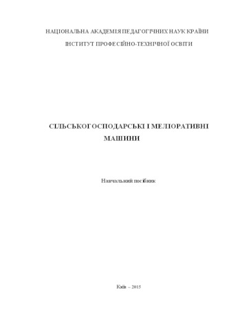 The tutorial discusses the classification, structure, workflow control, and the main technical and operational parameters common models of agricultural and land reclamation machines, described their working bodies, interaction with the material being processed. The foundations of the theory of the process of calculating agricultural machinery.