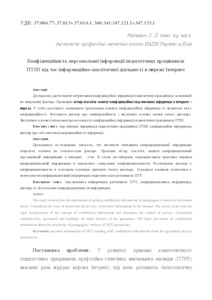 The study showed that the mechanism of getting confidential information of pedagogues is based on the human factor. Considered the ways of protection the privacy of personal information in the Internet. The article deals with the legal interpretation of the concept of confidential information and determine the content of privacy. Considered confidentiality agreement and highlight the main features of the agreement. The basic provisions of confidential information about the possibility of pedagogical workers of VET institutions.
