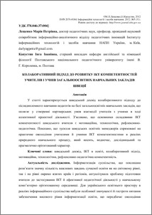 - Лещенко, М.П. and Капустян, І.І. (2012) Collaborative approach to the development of ICT competence of teachers and students of secondary schools in Sweden Інформаційні технології і засоби навчання, 5 (31). ISSN Online 2076-8184