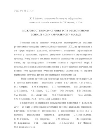 | Keywords: | ICT, inclusive education, pre-school educational institution. |