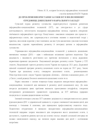 | Keywords: | ICT, inclusive education, pre-school educational institution. |