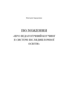 Regulations on pedagogical coaching in the system of postgraduate education defines regulatory, organizational, scientific and methodological principles of innovative technology scientific and methodological support that improves the quality of training, retraining and advanced training of management and teaching staff education, formation teacher of the new quality, innovation culture, ability continuously learn throughout life. In planning and implementing individual educational trajectory professional and personal self-development at all stages of the cycle mizhatestatsiynoho filed akmeohramu pedagogical skills of teachers. For scientists, staff of higher education institutions, organizers of postgraduate teacher education, training courses teaching staff, heads of secondary schools and institutions of secondary education, as well as all those interested in the modernization of the national system of Postgraduate Education.