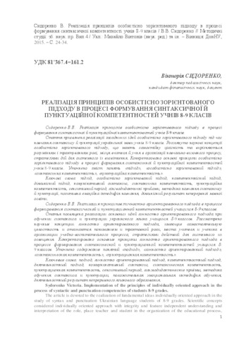 - Сидоренко, В.В. (2015) Implementation of the principles of individually oriented approach in the process of syntactic and punctuation competencies of students 8-9 grades Методичні студії, 4. pp. 24-34.