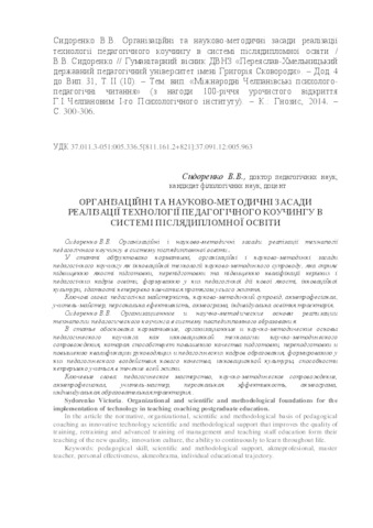 - Сидоренко, В.В. (2014) Organizational and scientific and methodological foundations for the implementation of technology in teaching coaching postgraduate education Гуманітарний вісник ДВНЗ «Переяслав-Хмельницький державний педагогічний університет імені Григорія Сковороди», 10 (31/4). pp. 300-306.