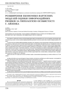 - Хоріна, Олена Іванівна (orcid.org/0000-0002-5412-6771) and Скиба, Андрій Володимирович (2015) Expanding of economic cost models for risk evaluation of information security by the typology of personality by Н. Eysenck Економіка та держава, 8. pp. 116-120. ISSN 2306-6806