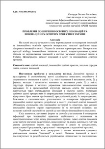 - Овчарук, О.В. (2013) The problems of dissemination of the educational innovations and innovatopnal educational projects in Ukraine Postmetodika, 2 (111). pp. 1-5. ISSN 1815-3194