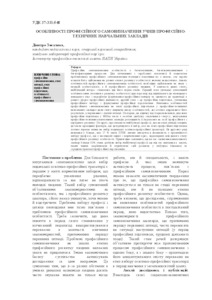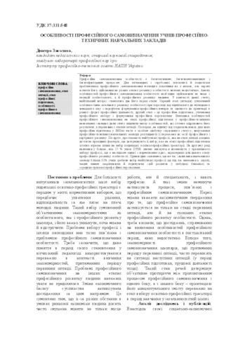 - Закатнов, Д.О. (2015) Special features of professional self-determination of students at vocational education schools Науковий вісник Інституту професійно-технічної освіти НАПН України. Професійна педагогіка (10). pp. 29-38. ISSN 2223-5752