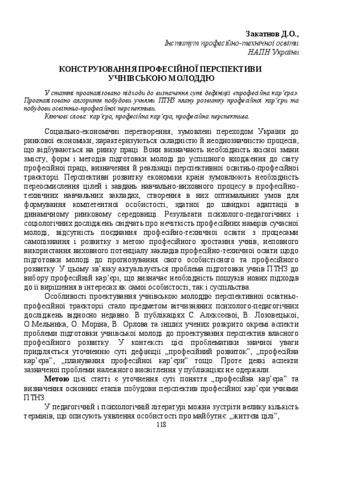- Закатнов, Д.О. (2015) Constructing of professional prospect by student's young people Актуальні проблеми професійної орієнтації та професійного навчання населення у контексті подолання кризи ринку праці : матеріали VIІІ Міжнародної науково-практичної конференції (1 грудня 2015 р., м. Київ). pp. 118-123. ISSN 978-617-649-042-5