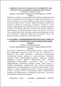 Regulation on Distance Learning approved by Ministry of Education and Science of Ukraine (decree № 466 from 25 April 2013) initiated a new wave of discussions of the possibility of using distance learning in general secondary schools. We have studied the question of mastery of innovative educational technologies of distance learning by school teachers. Informational and analytical papers are grouped around the problems of providing schools by means of ICT and the problem of informatization of national education. Among other things , the report uses statistical data of the European Statistics and Information Society of the European Commission (2009) and the Executive Agency for Education, Audio visual facilities and Culture (2011)