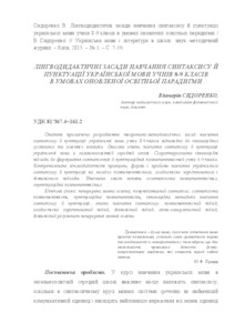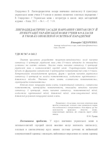 - Сидоренко, В.В. (2015) Linguodidactic principles of learning syntax and punctuation Ukrainian language students of 8-9 grades in terms of updated educational paradigm Українська мова і література в школі, 1 (153). pp. 7-19.