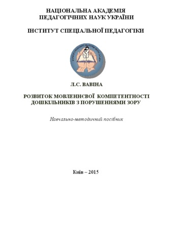- Вавіна, Л.С. (2015) Speech competence development of preschool children with visual impairments [Teaching Resource] (Unpublished)