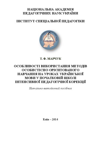 Марчук, Т.Ф. (2014) Features of personality oriented teaching methods at the Ukrainian lessons in elementary school intensive pedagogical correction . Інститут спеціальної педагогіки НАПН України, м.Київ, Україна.