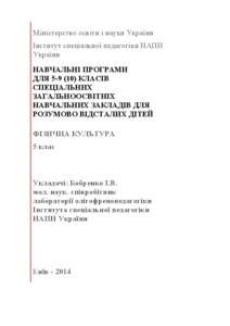 ФІЗИЧНА КУЛЬТУРА для розумово відсталих дітей 5 кл (І.В. Бобренко).pdf - Published Version Download (627kB) | Preview |