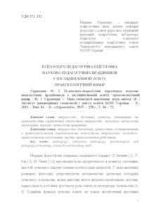 - Скрипник, М.І. (2015) Psycho-pedagogical training of research and teaching staff in postgraduate education: praxiological dimension Нові технології навчання, 84. pp. 66-72.