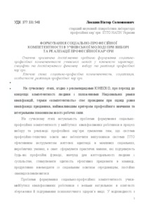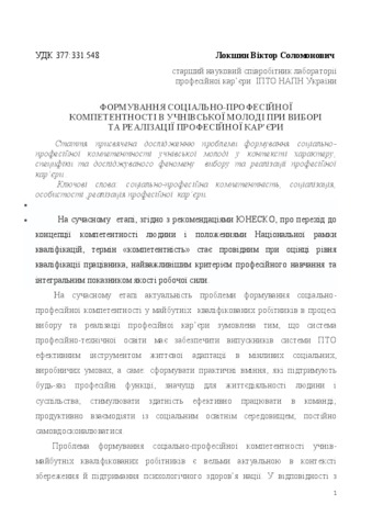 - Локшин, В.С. (2015) Formation of social and professional competence in youth in the context of the selection and implementation of professional career. Наукові записки (127). pp. 66-78. ISSN 2310-371X
