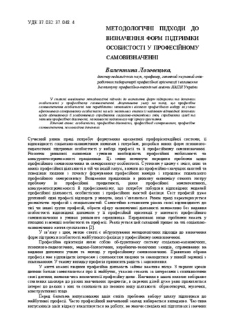 - Лозовецька, В.Т. (2012) Methodological approaches to finding individual forms of support for professional self-determination Науковий вісник Інституту професійно-технічної освіти НАПН України. Професійна педагогіка, 1 (3). pp. 11-18. ISSN 2223-5752
