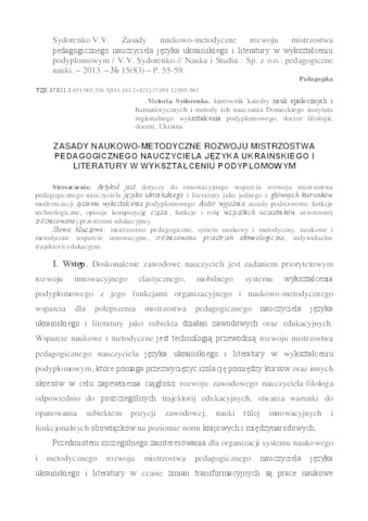 - Сидоренко, В.В. (2013) Scientific and methodological support of teacher skills teacher of Ukrainian language and literature in post-graduate education Nauka i Studia, 15 (83). pp. 55-59.