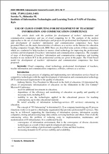 - Сороко, Н.В. and Шиненко, М.А. (orcid.org/0000-0001-6697-747X) (2013) Use of Cloud Computing for Development of Teachers’ Information and Communication Competence Інформаційні технології в освіті (17). pp. 118-130. ISSN 1998-6939