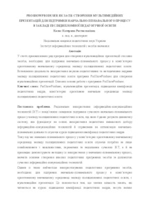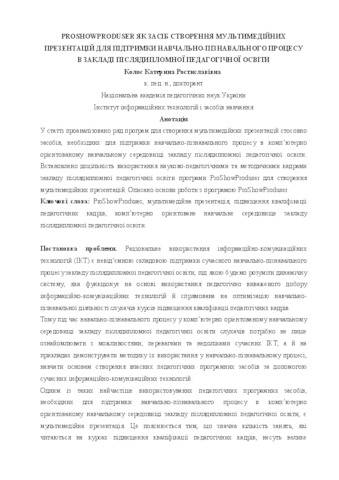 - Колос, К.Р. (2013) ProShowProduser as a means of creating multimedia presentations to support the teaching and learning process in the establishment of postgraduate education The computer at school and family, 4 (108). pp. 25-29. ISSN 2307 9851