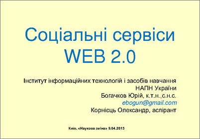 | Keywords: | Соціальні сервіси, WEB 2.0 |