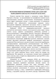 The report author has considered aspects of information and analysis , outlined the main issues of this work. Focused on the task manager vocational schools to provide specialized training and education of future workers in the structure of the cluster. Considered the position and tasks of vocational schools in the structure of territorial klastera.Arhumentuvav the need to build a training system vzayemopidhotovky and tools in the innovation chain self- education - technology - production based on horizontal links in the chain structure .
