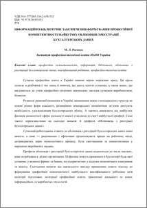 | Keywords: | професійна компетентність, інформація, бібліотека, обліковець з реєстрації бухгалтерських даних, кваліфікований робітник, професійно-технічна освіта |